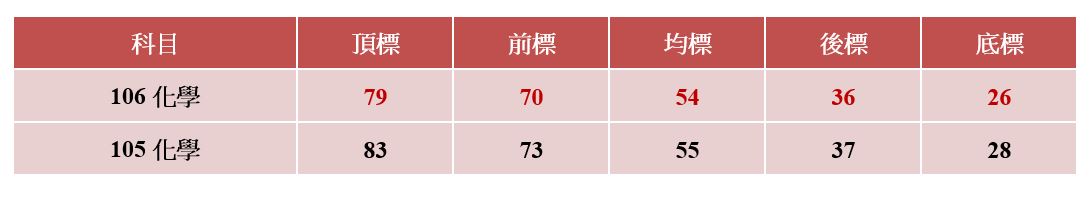 指考分發 台大醫門檻估460分 - 生活 - 自由時報電子報 from img.ltn.com.tw Jul 29, 2021 · 末代大學指考英文科,全教會110指考英文科評論教師群認為,今年考題選文多元,詞彙難度增加,尤其英文作文考大學教授全英文授課,恐有城鄉落差,雙峰現象恐更明顯,預估5標微幅下降。全教會英文科評論老師包括台北市立大同高中老師劉郁芬、台北市立和平高中老師温宥基、台北市立明倫. Jul 30, 2021 · 一一 年指考國文科為末代考科,明年初學測考過國文後,七月將不再重複施測,高中教師分析今年壓卷題引學者論述,將米、飯、酒的變化應用,拿來譬喻國文科教材與試題間的應用延伸,應是預示一一一年學測準備方向。預估五標為頂標七十八分、前標七十一分、均標五十九分、後標四十六分. Aug 16, 2021 · 受到國內疫情爆發影響,末代指考今(16)日終於放榜,考生可於上午9點起上網查詢成績,各科五標、人數百分比累計表等資料一併公布,其中不少考生試後哀嘆連連的物理、化學科頂標與去年相比下跌,物理更是… Jul 19, 2021 · 指考時程 指考放榜 指考五標 指考解答 預約諮詢: 學測重考課程 (預約諮詢還可免費領取【素養模擬試卷&解答】,數量有限,送完為止) 110 指考成績查詢系統 大考中心指出,指考紙本成績單將於 16 日寄發,無論是集體或個別報名的考生,都. Jul 18, 2019 · 108學年度指考成績在今(18日)寄發通知單,而各科之頂標、前標、均標、後標、底標5項成績標準稍早大考中心也已公布。108指考五標成績公告108學年度指定科目考試 | 各科 Jul 18, 2016 · 105年大學指考五標成績表 1. 科目 頂標 前標 均標 後標 底標 國文 69 64 54 44 36 英文 79 69 50 31 22 數學甲 75 65 47 27 15 數學乙 87 78 60 36 25 化學 83 73 55 37 28 物理 83 73 54 37 27 生物 82 76 64 48 36 歷史 77 72 61 50 41 地理 70 64 56 46 40 公民與. Jul 18, 2019 · 看更多「指考分發」選填志願專題: 【108指考分發】選填志願6大攻略 108學年度指定科目考試各科的五標成績今天公布了。整體來說,國文、英文、數學乙、化學、生物、公民的五標成績都較去年提高,數學甲和地理的五標則較去年為低。