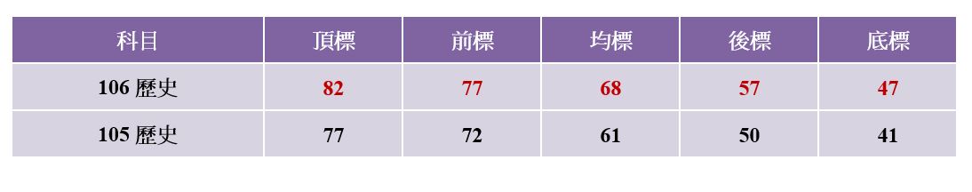 科目 頂標 前標 均標 後標 底標 國文 69 64 54 44 36 英文 79 69 50 31 22 數學甲 75 65 47 27 15 數學乙 87 78 60 36 25 化學 83 73 55 37 28 物理 83 73 54 37 27 生物 82 76 64 48 36 歷史 77 72 61 50 41 地理 70 64 56 46 40 公民與. Jul 30, 2021 · 一一 年指考國文科為末代考科,明年初學測考過國文後,七月將不再重複施測,高中教師分析今年壓卷題引學者論述,將米、飯、酒的變化應用,拿來譬喻國文科教材與試題間的應用延伸,應是預示一一一年學測準備方向。預估五標為頂標七十八分、前標七十一分、均標五十九分、後標四十六分. Jul 18, 2016 · 105年大學指考五標成績表 1. Jul 19, 2021 · 指考時程 指考放榜 指考五標 指考解答 預約諮詢: 學測重考課程 (預約諮詢還可免費領取【素養模擬試卷&解答】,數量有限,送完為止) 110 指考成績查詢系統 大考中心指出,指考紙本成績單將於 16 日寄發,無論是集體或個別報名的考生,都. Jul 18, 2019 · 108學年度指考成績在今(18日)寄發通知單,而各科之頂標、前標、均標、後標、底標5項成績標準稍早大考中心也已公布。108指考五標成績公告108學年度指定科目考試 | 各科